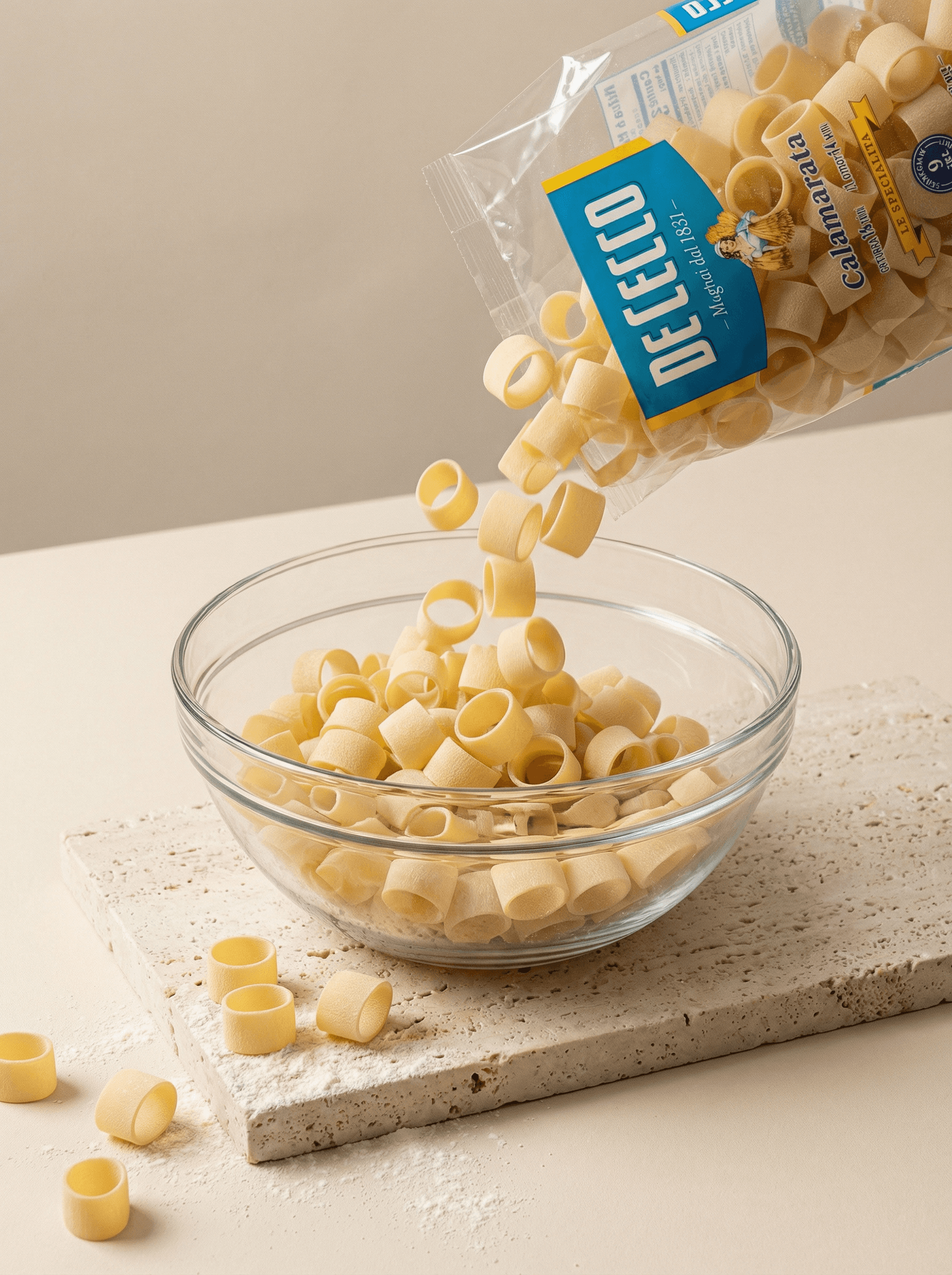 Calamarata pasta takes its name from its ring shape, resembling a squid ring, and is particularly well-suited to sauces made with fish and shellfish. It's also worth trying with tomato-based sauces or rich meat ragùs.