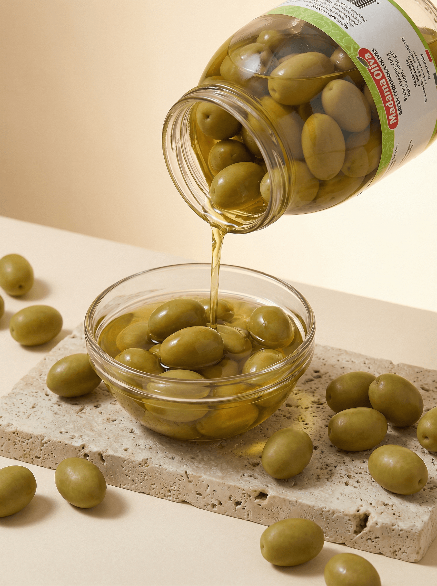 Green Bella of Cerignola are one of the most popular varieties of table olives. Their size and colour make them extremely appetising. With a savoury flavour, these fleshy and crunchy olives are mainly used in cheese starters, nibbles or in the preparation of aperitifs and cocktails.
