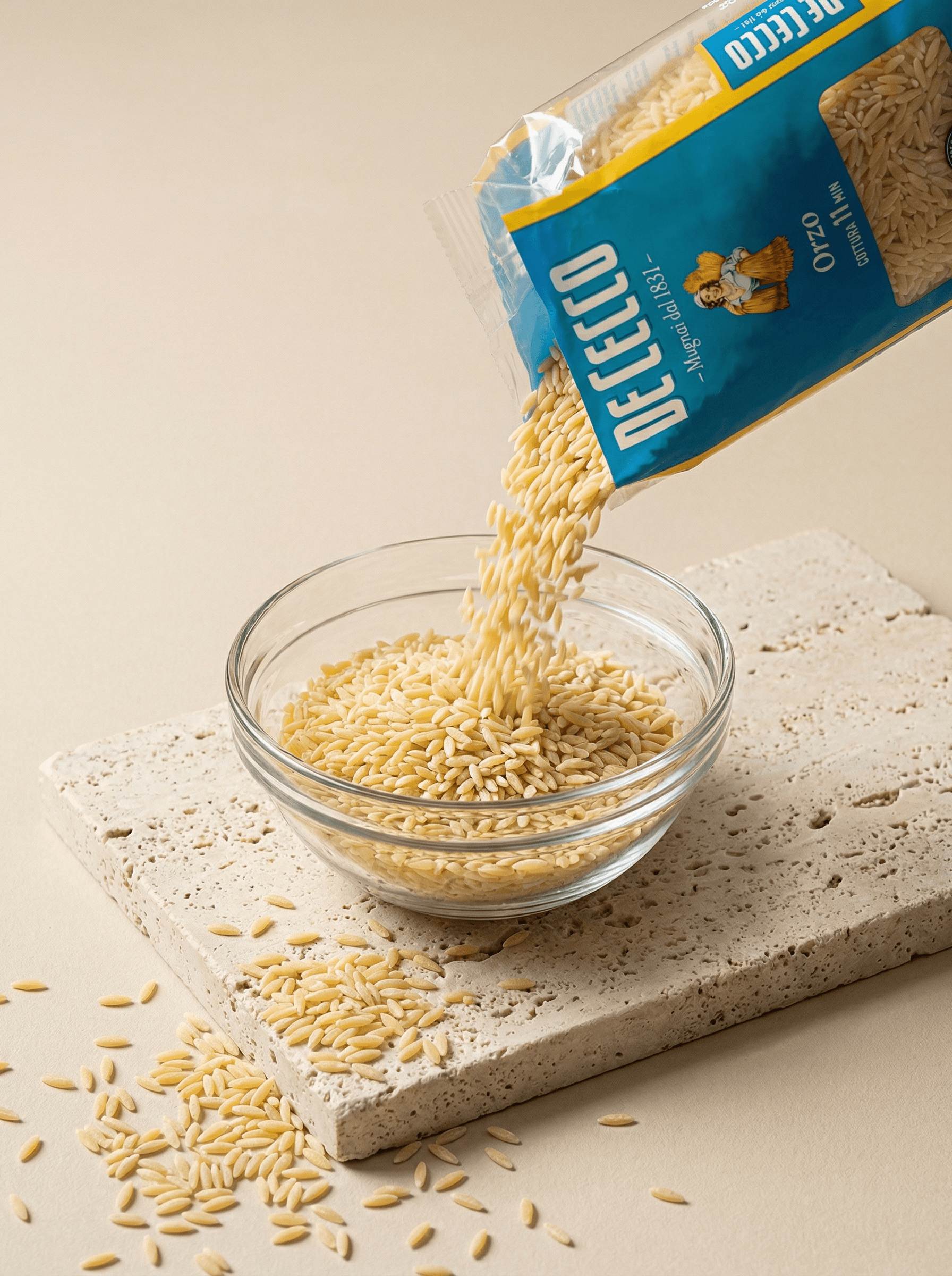 Orzo belongs to the minute pasta family to be cooked in broth. This pasta shape was undoubtedly invented to stimulate the imagination of children who commonly eat this pasta in baby food and vegetable soups. The pasta resembles small grains and is fun and appealing. It is especially good for preparing clear soups such as broths or consommé, enhanced with croutons or vegetables cut in julienne strips. This pasta can be used in thick creamy or velvety soups