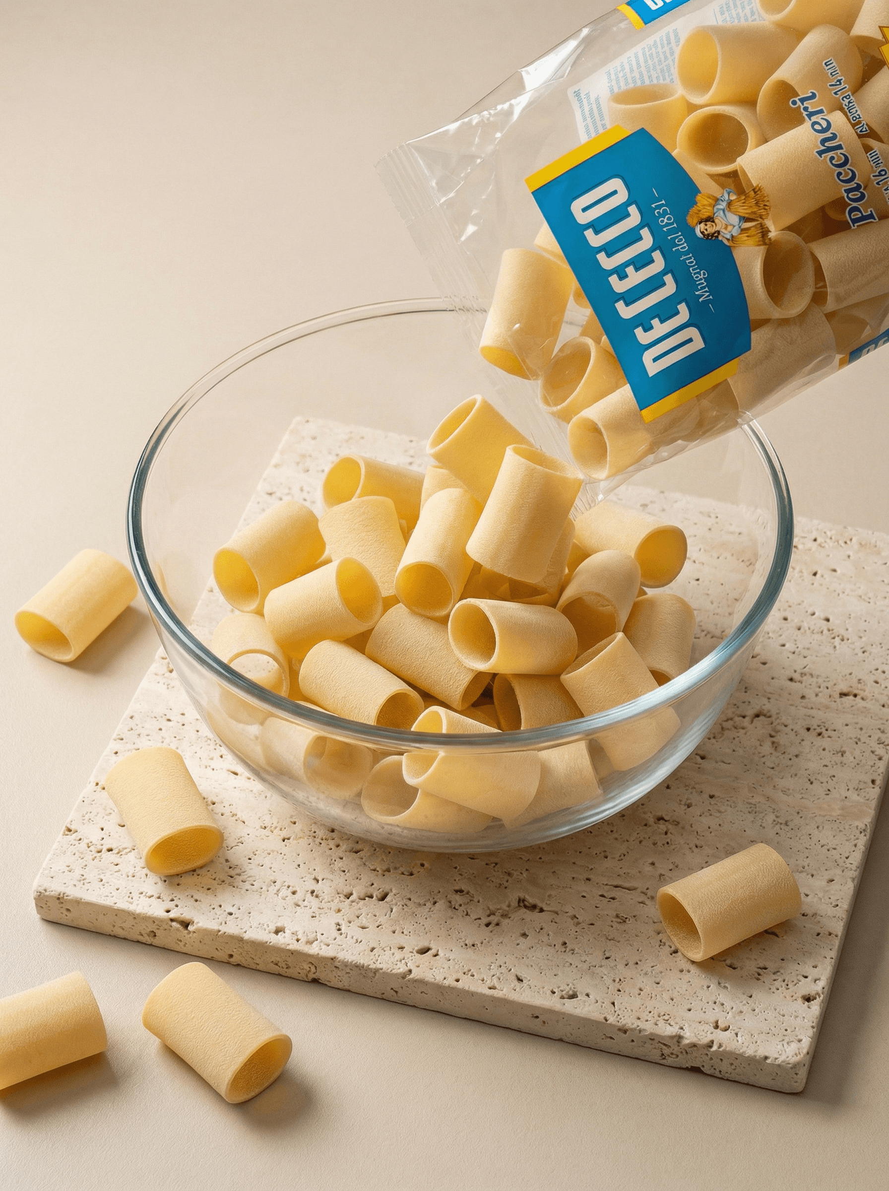 Paccheri are recommended for dry pasta dishes with thick and hearty meat sauces, such as Neapolitan ragù, which can penetrate the pasta and flavor it. Alternatively, they can be enjoyed in baked dishes with cheese and tomato sauce or with rich fish sauces.
