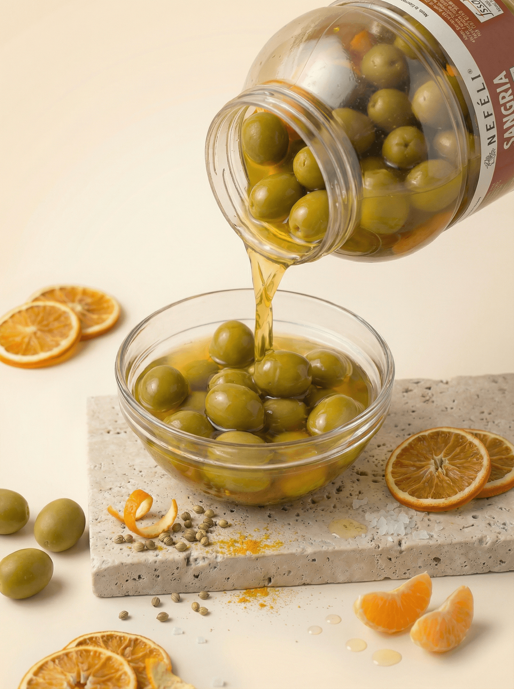 Elevate your cocktail hour with Nefeli’s Sangria Olives. These pitted green olives are infused with a tantalizing mix of dried tangerine, orange peel, and Mediterranean spices, creating a flavor profile reminiscent of the vibrant Spanish drink. Add a Mediterranean twist to your favorite cocktails with Nefeli’s Sangria Olives, which are vegan certified. Try them today and elevate your snack game to a whole new level!
